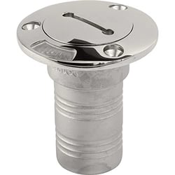 The Sea-Dog Line 3513201 is a premium marine gas deck fill constructed of corrosion-resistant cast 316 stainless steel for maximum durability in harsh marine environments. This high-quality fuel fill features a slotted security cap that requires a key to open and close, providing theft deterrence and preventing unauthorized access to your fuel system.