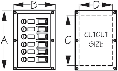 • Six 15-amp 12V DC illuminated SPST On/Off rocker switches for easy circuit identification