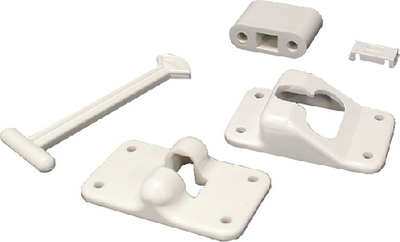 The Kwikee Products Co 381409 is a complete door holder assembly designed for RV entry steps. This essential component keeps your RV door securely in the open position, preventing it from swinging shut unexpectedly while entering or exiting your vehicle.