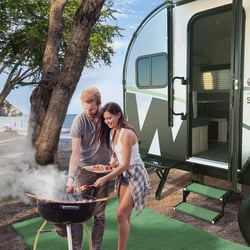 This step rug helps protect your RV's interior flooring from tracked-in dirt, mud, and moisture while providing a slip-resistant surface. The durable outdoor turf construction ensures long-lasting performance season after season, making it an essential accessory for any RV owner.