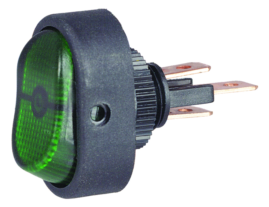 The Hella H61923001 is a high-quality single-pole single-throw (SPST) rocker switch featuring a green LED indicator for clear visibility in low-light conditions. This professional-grade switch is designed for marine, automotive, and powersports applications where reliable on/off control is essential.