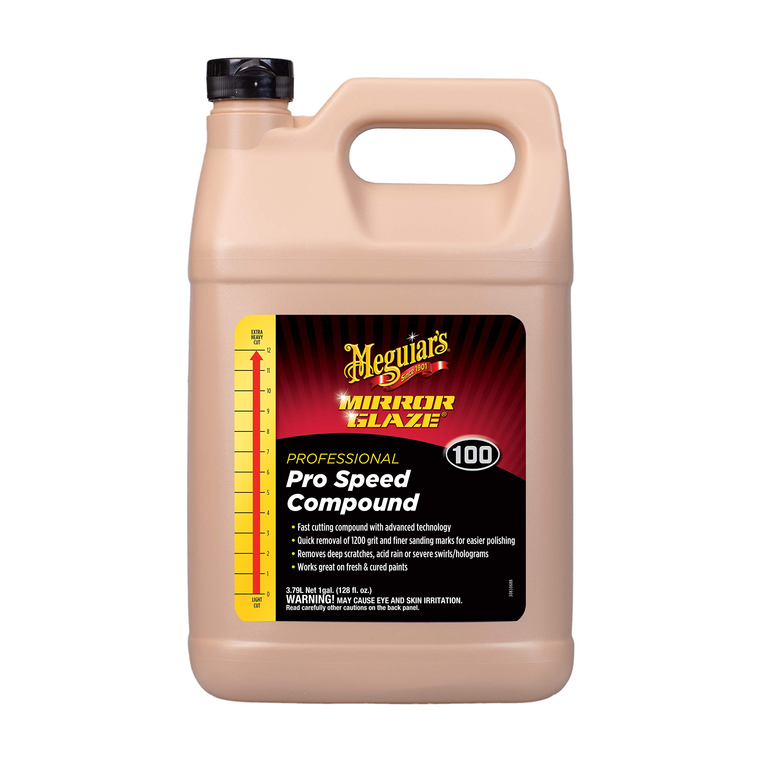 Meguiar's M100 Mirror Glaze Pro Speed Compound is a professional-grade, fast-cutting compound designed to remove heavy defects from automotive paint and marine gelcoat surfaces. This aggressive formula quickly eliminates 1200 grit and finer sanding marks, deep scratches, severe swirl marks, and acid rain damage, preparing surfaces for final polishing.