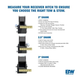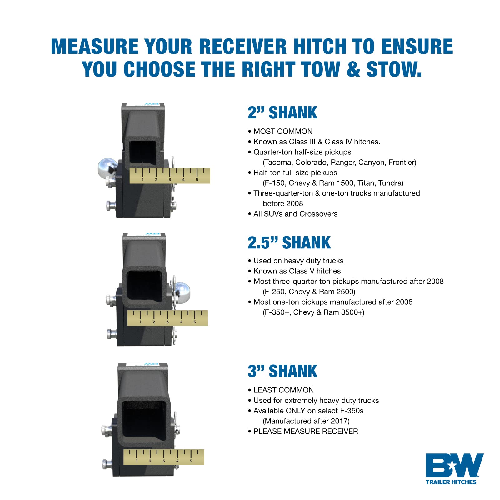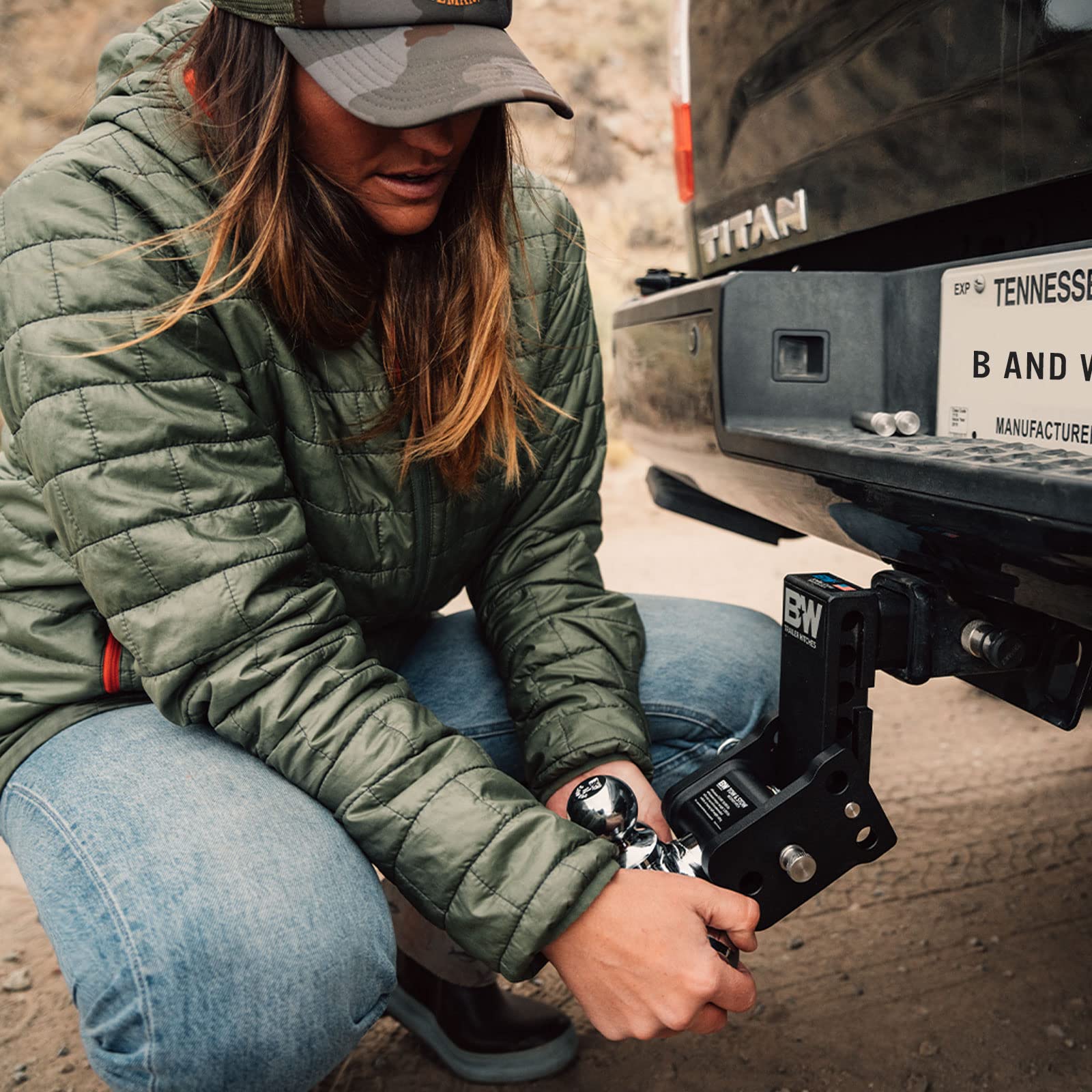 The B&W Tow & Stow adjustable ball mount is engineered for hardworking versatility, allowing you to tow different trailers with confidence while keeping your hitch secured and out of the way when not in use. Backed by B&W's limited lifetime warranty.