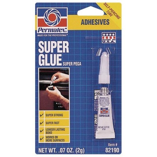 Permatex 82190 Super Glue is a high-performance cyanoacrylate adhesive specially formulated to deliver fast, long-lasting bonds on a wide variety of automotive and general-purpose materials. This professional-grade super glue creates a permanent, transparent bond that remains clear and unobtrusive after curing.
