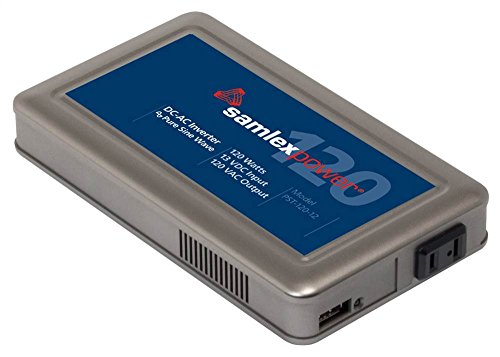 The Samlex PST-12012 is a compact pure sine wave DC-to-AC power inverter that converts 12V DC battery power to 120V AC household power. With a continuous output of 120 watts and surge capability, this inverter delivers clean, reliable power suitable for sensitive electronics including laptops, tablets, smartphones, and small appliances.