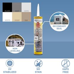 This professional-grade lap sealant is essential for RV roof maintenance and repair. The non-sag formulation ensures the sealant stays where applied without running or dripping, making it perfect for overhead sealing tasks. Use it to maintain existing seals or create new watertight barriers on your RV or trailer roof.