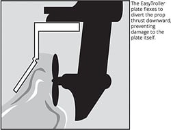 • Mounts directly to the cavitation plate and positions a few inches behind the propeller for optimal water flow disruption