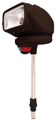 The Golight 2151 GoBee is a compact, versatile bow-mount search and navigation light designed for fishing boats, pontoons, and small watercraft. This dual-purpose marine light combines a powerful halogen spotlight with a 360-degree navigation light, providing both illumination for night navigation and a remote-controlled searchlight for scanning the water.
