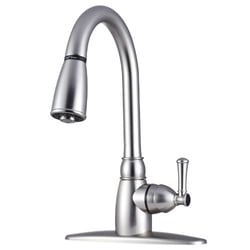 The Dura Faucet DFPK160SN is a versatile pull-down kitchen faucet designed specifically for RV and mobile living applications. This non-metallic faucet combines lightweight durability with an attractive brushed satin nickel plated finish that resists corrosion in harsh mobile environments.
