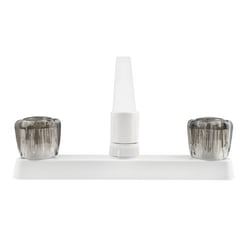 Dura Faucet DFPK600SWT Two-Handle RV Kitchen Faucet with Smoked Acrylic Knobs White