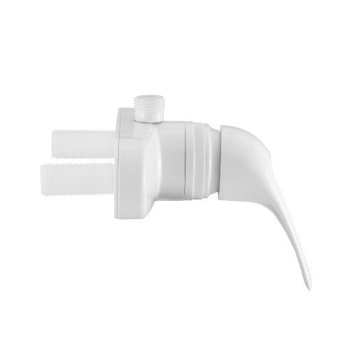 The Dura Faucet DFSA150WT is a single lever RV shower faucet designed specifically for recreational vehicle applications. This wall-mounted shower valve features durable plastic construction with a clean white finish that complements most RV bathroom interiors.