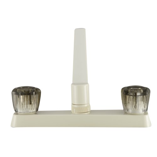 The Dura Faucet DFPK600SBQ is a two-handle RV kitchen faucet designed specifically for recreational vehicles, motorhomes, travel trailers, and mobile homes. This non-metallic faucet features an attractive bisque parchment finish that complements a variety of RV interior styles.