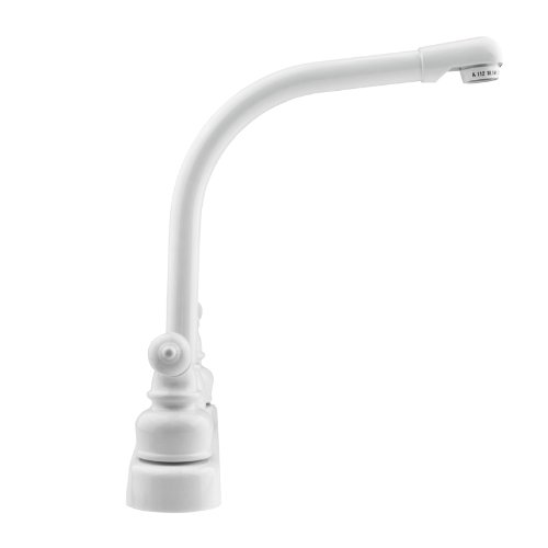 The Dura Faucet DFPK210CWT Classical Hi-Rise Kitchen Faucet brings elegant style and reliable performance to your RV or mobile kitchen. Designed specifically for recreational vehicles, this white finish faucet features a traditional classical design that complements a variety of interior styles.