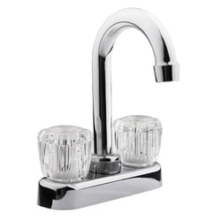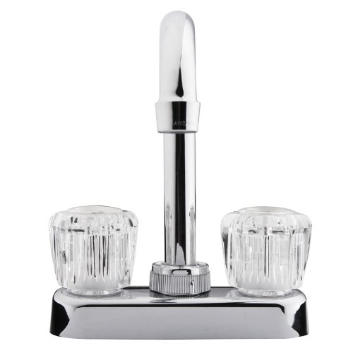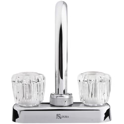 The Dura Faucet DFPB150ACP is a compact bar faucet designed specifically for RV, marine, and mobile applications. This chrome-plated faucet features a space-saving single-piece design with a 4-inch bar deck mount configuration, making it ideal for wet bars, prep sinks, and secondary kitchen installations where space is at a premium.