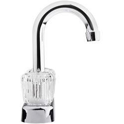 • Dual crystal-clear acrylic knob handles for hot and cold water control