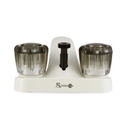 • Two smoked acrylic knob handles for hot and cold water control