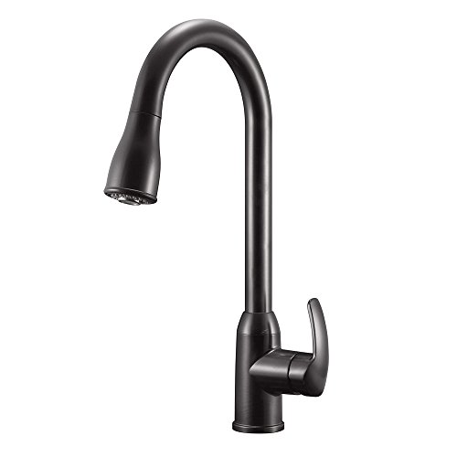 The Dura Faucet DFNMK508VB is a premium RV kitchen faucet designed specifically for recreational vehicles, motorhomes, and travel trailers. This kitchen faucet features a tastefully curved high-rise design and comes with a detachable pull-down sprayer that provides complete access to your sink for easy cleaning and filling of large pots.