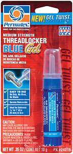 Permatex 24010 is an OEM-specified medium strength threadlocker designed to prevent fasteners from loosening due to vibration while remaining removable with hand tools. The gel formula provides reliable thread locking without drips, globs, or mess, and the GEL TWIST pin-point applicator allows precise application directly onto the part.