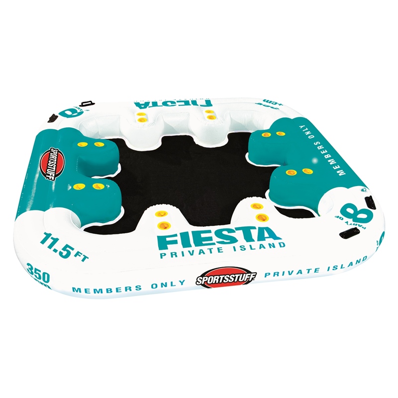 The Sportsstuff Fiesta Island is the ultimate inflatable floating party platform designed for fun on the water. This spacious inflatable lounge comfortably accommodates up to 8 people with a maximum weight capacity of 1,360 pounds, making it perfect for family gatherings, lake days, or pool parties.