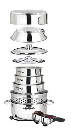The Magma A10-367 Professional Series Gourmet Nesting Colander is designed specifically to complement any Magma nesting cookware collection. Constructed from premium 100% 18-10 stainless steel, this versatile colander fits perfectly inside any Magma 5-quart stock pot for cooking pasta, steaming vegetables, or preparing shellfish.