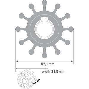 This impeller serves as a direct replacement for OEM part number 10-32621-2, ensuring proper fitment and performance in compatible Johnson raw water cooling pumps. Regular impeller replacement is essential for maintaining efficient engine cooling and preventing overheating damage.