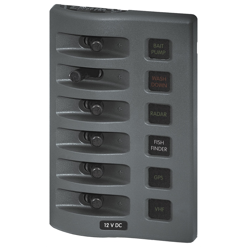 A rugged switch panel that is ideal for flybridge or open cockpit installations
