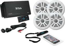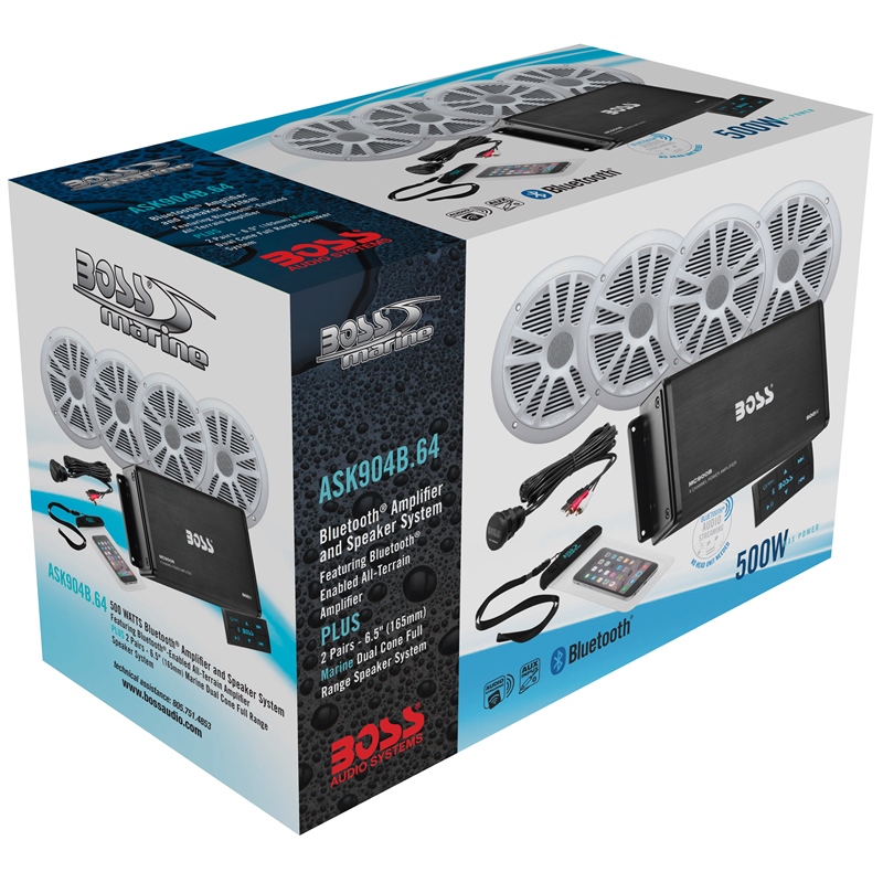 The Boss Audio Systems ASK904B.64 is a complete marine audio solution designed for boats, ATVs, UTVs, and other powersports vehicles without space for a traditional head unit. This all-in-one kit delivers powerful sound through Bluetooth streaming, eliminating the need for a separate stereo receiver.
