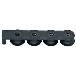 The Barton Marine Mast Base Organizer is a professional-grade deck hardware system designed to streamline sail control lines at the base of the mast. Featuring a distinctive 'Spectro' grey anodized aluminum finish for superior corrosion resistance, this organizer accepts up to four double tang blocks mounted on individual stainless steel swivel posts with three deck fixing points.