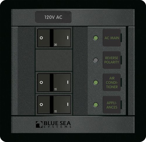 This panel is ideal for AC distribution in boats, RVs, and other mobile applications where reliable circuit protection and clear status indication are essential. The Blue Sea Systems Panel 360 series is known for quality construction and ease of installation.