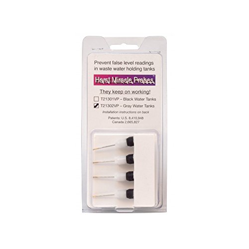 The Valterra T21302VP Horst Miracle Probes are designed to eliminate false readings caused by sludge and soap residue build-up on RV gray water tank walls. These innovative sensors feature a patented extended-length design that positions the sensing element away from tank walls where residue accumulates, ensuring accurate tank level monitoring.