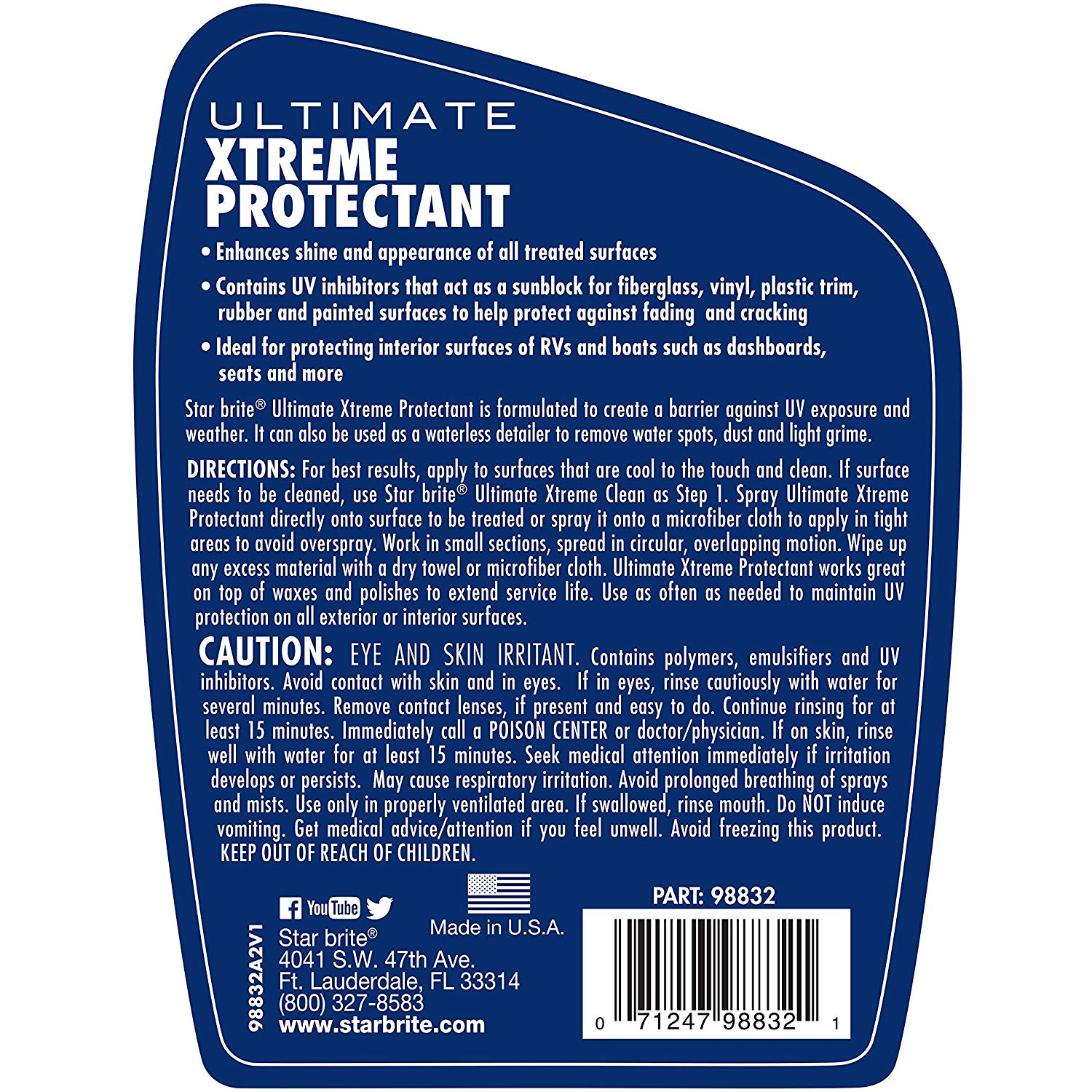 Starbrite Ultimate Xtreme Protectant provides superior protection for marine and automotive surfaces against the damaging effects of UV radiation, salt air, and environmental contaminants. This professional-grade formula creates a durable protective barrier that prevents fading, cracking, and drying while restoring a rich, natural shine to treated surfaces.