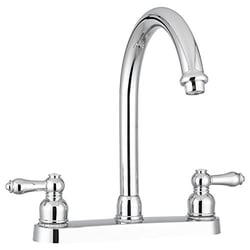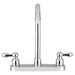The Dura Faucet DFPK340LCP is a high-rise RV kitchen faucet designed specifically for recreational vehicles and mobile applications. Featuring a chrome finish and non-metallic construction, this faucet combines durability with lead-free safety for potable water systems.