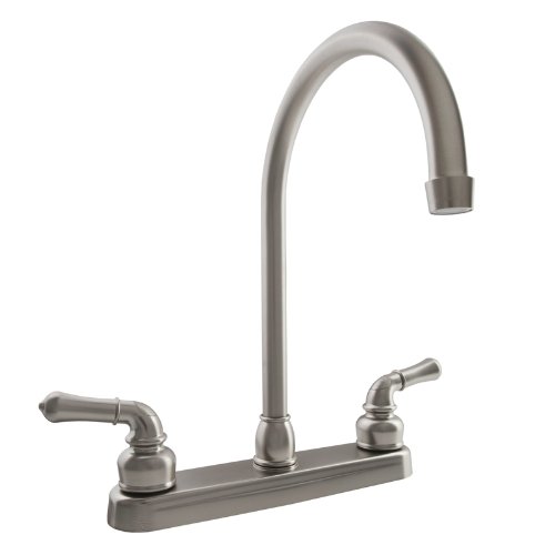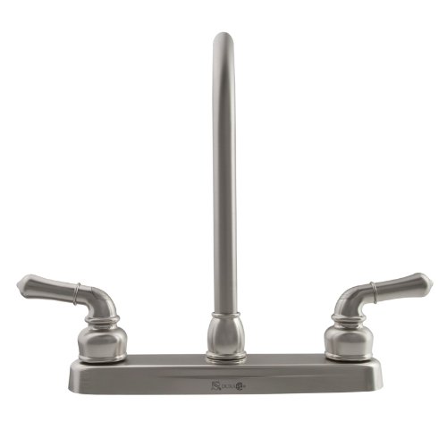 The Dura Faucet DF-PK330HC-SN is a premium RV kitchen faucet designed specifically for recreational vehicles, motorhomes, and campers. This stylish J-spout faucet combines durability with modern aesthetics, featuring a beautiful satin nickel finish that complements any RV kitchen décor.
