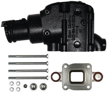 The Barr Marine MC20864309 is a cast iron dry joint exhaust riser elbow designed as a direct replacement for MerCruiser part number 864309T02. This component features a 7-degree down angle outlet and accepts 4-inch outside diameter exhaust hose, making it an essential part of your marine engine's exhaust system.