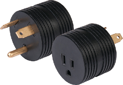• 30-amp male plug (NEMA TT-30P) to 15-amp female receptacle adapter