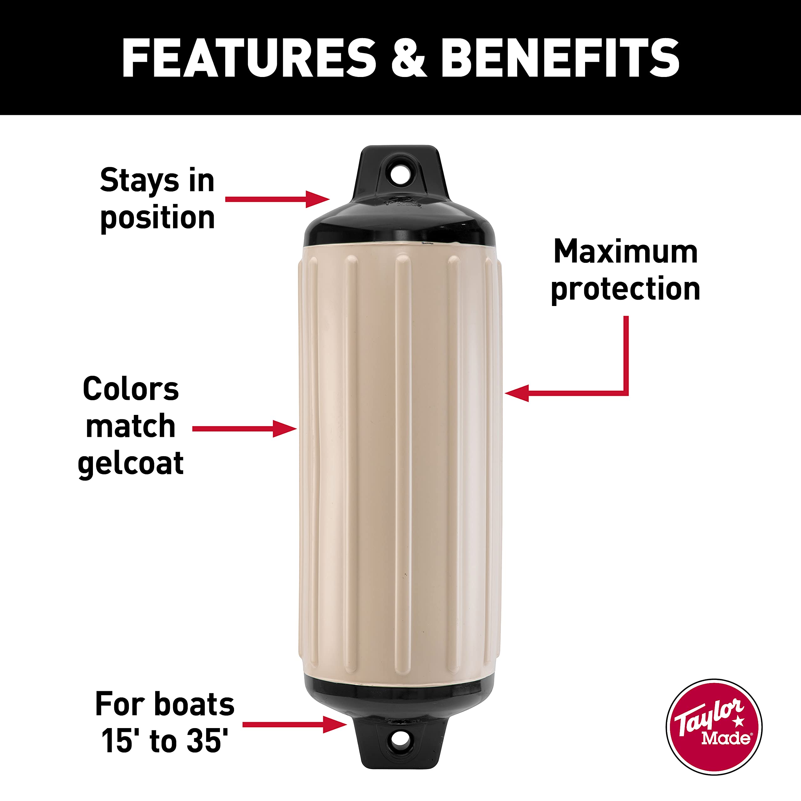 The Taylor Made Super Gard inflatable vinyl fender provides reliable protection for your boat with premium construction and durability. This 6.5" x 22" fender features a sand-colored finish that complements a variety of vessel styles while delivering robust defense against dock damage and hull-to-hull contact.