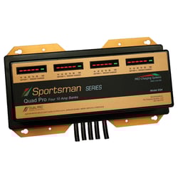 The Pro Charger SS4 Sportsman Series is a professional-grade 4-bank battery charging system designed for marine, RV, and powersports applications requiring simultaneous charging of multiple batteries. This 40-amp charger delivers 10 amps per bank, providing efficient and independent charging for up to four 12-volt lead-acid batteries.