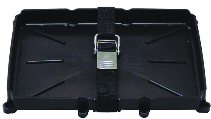 The T-H Marine NBH-24P-20B Narrow Battery Holder Tray is designed for secure battery mounting in tight-space marine applications. This Series 24 battery holder meets all NMMA (National Marine Manufacturers Association) specifications for safety and reliability on the water.