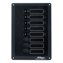The NewMar ACCY-IX is a versatile DC electrical distribution panel designed for marine and RV applications where a limited number of electrical circuits are needed. Its modular design makes it ideal for easy and attractive expansion of existing electrical system capacity.