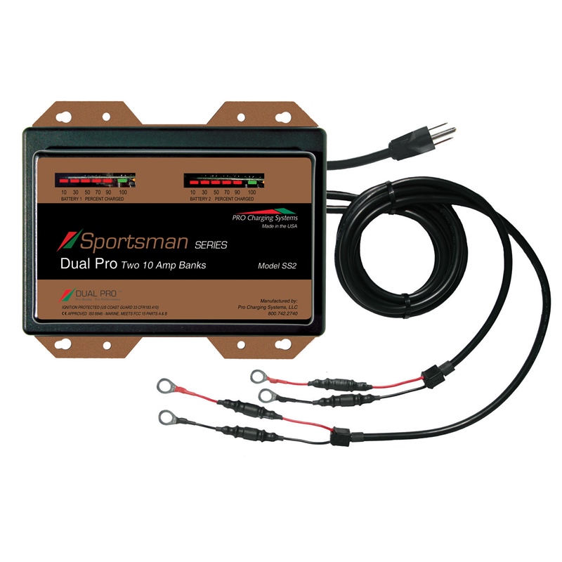 The Pro Charger SS1 Sportsman Series is a rugged, waterproof single-bank battery charger delivering 10 amps of charging power for 12-volt battery systems. Designed for demanding marine environments, this charger features advanced microprocessor-controlled PROVolt Intuitive Charging Technology that provides fully automatic, multi-stage charging to extend battery life and deliver faster, fuller charges.