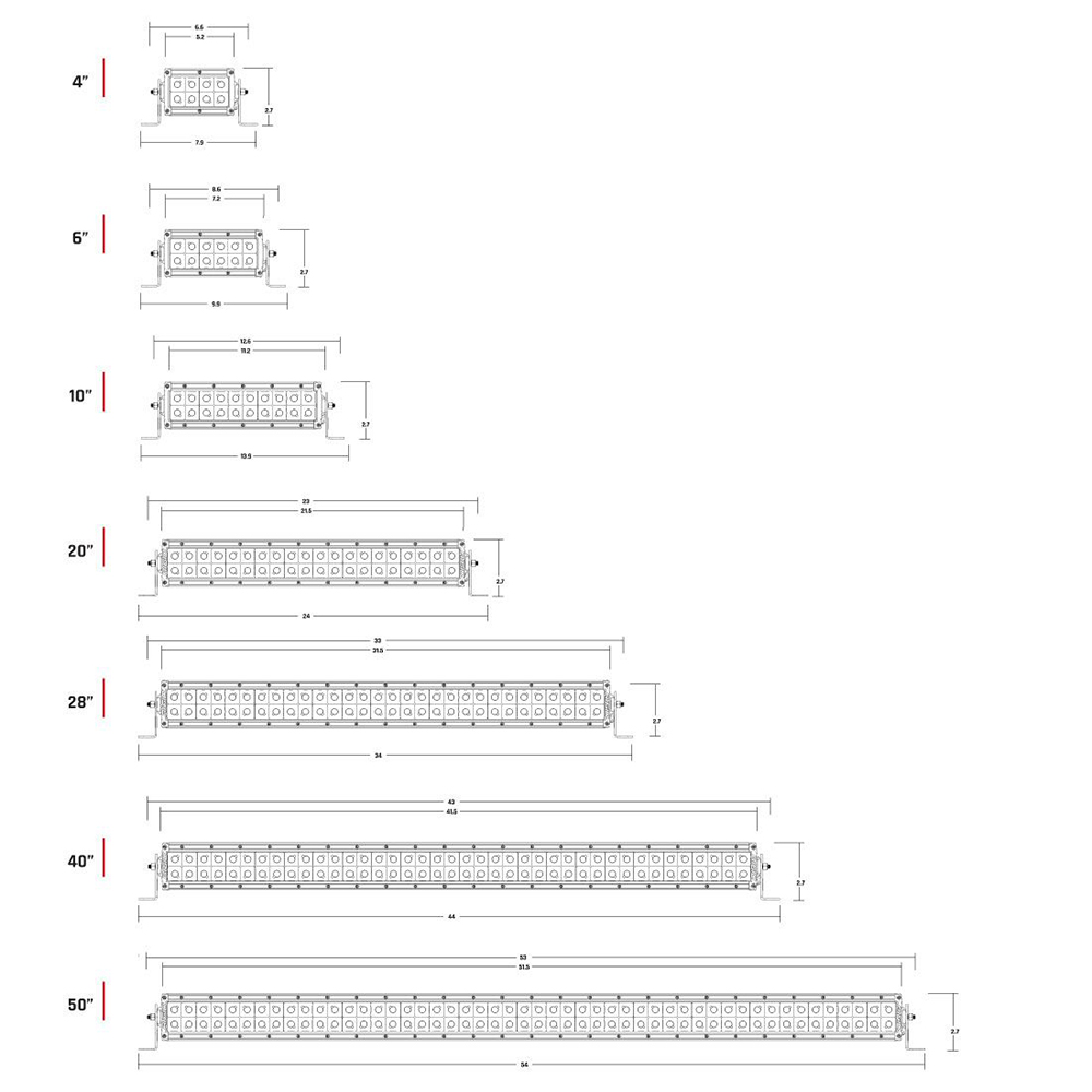Engineered for off-road enthusiasts, this light bar excels in automotive, powersports, marine, and emergency vehicle applications. The E-Series Pro represents RIGID's commitment to innovation, combining industry-leading brightness with efficient power consumption. Each unit measures 10 inches in length and weighs just 4.12 pounds, making it an ideal balance of performance and practicality.