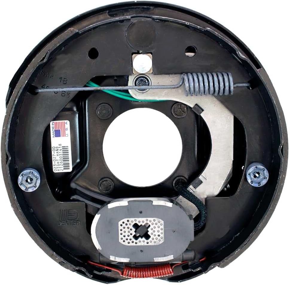 This complete 10-inch by 2-1/4-inch electric trailer brake assembly is designed for right-hand installation on 3,500 lb capacity trailer axles. The fully assembled unit features bonded brake shoes, return springs, and an electromagnet with pre-spliced wires, all mounted to a durable backing plate for quick and easy installation.