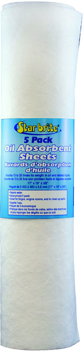 The Starbrite 091845 Bilge Oil Absorbent Pads provide the most effective solution for cleaning up or preventing oil and fuel spills in your boat's bilge area. Each pad measures 17" x 19" x 3/8" and comes in a convenient 5-pack.