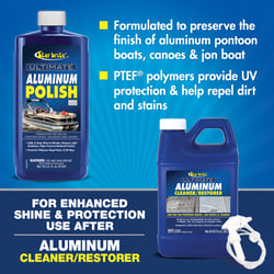Starbrite Ultimate Aluminum Polish is specifically formulated to preserve and protect the finish of aluminum watercraft including pontoon boats, canoes, and jon boats. This advanced polish restores shine while providing long-lasting protection against the harsh marine environment.