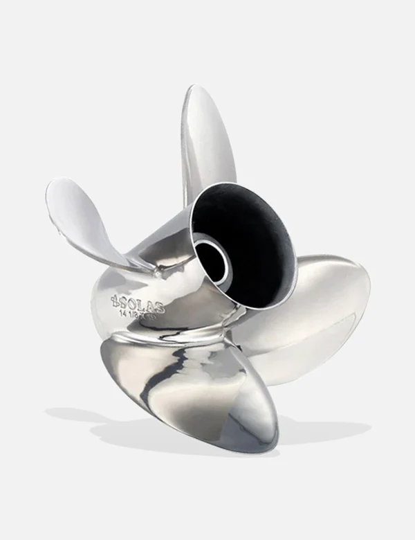 The Solas Rubex HR4 is a four-blade stainless steel propeller constructed with 24-10 stainless steel (24 percent chromium, 10 percent nickel), delivering exceptional corrosion resistance and durability for marine applications. This propeller features a 14-inch diameter, 25-inch pitch, and standard right-hand rotation, making it ideal for higher horsepower outboard motors.