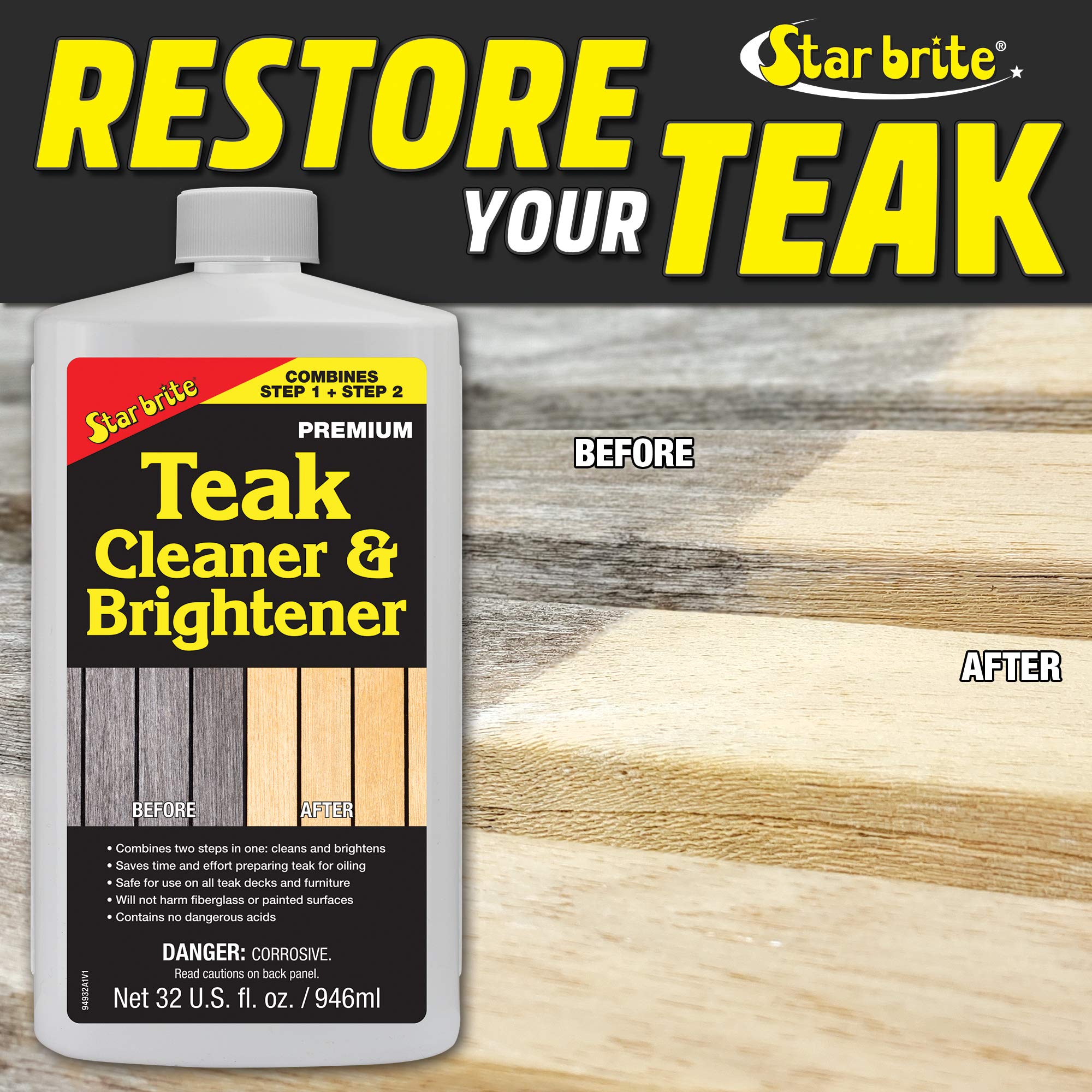 Starbrite 094932 One Step Teak Cleaner & Brightener 32 oz