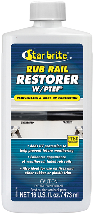 Starbrite Rub Rail Restorer with PTEF® is a premium restoration treatment designed to bring new life to dull, weathered rub rails on boats, trailers, and vehicles. This advanced formula quickly rejuvenates faded black and colored vinyl rub rails while covering up unsightly scuff marks and oxidation.