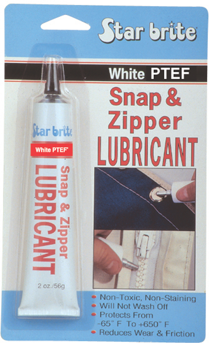 Star Brite Snap & Zipper Lubricant is specifically formulated to protect and maintain zippers and snaps on marine canvas, covers, and cushions. Salt water spray and debris can clog zippers, making them difficult to operate, but this specialized lubricant tenaciously adheres to both plastic and metal surfaces to reduce friction and prevent corrosion.
