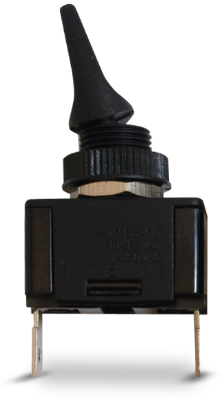 • Black plastic toggle with lock-nut and knurled cap nut included