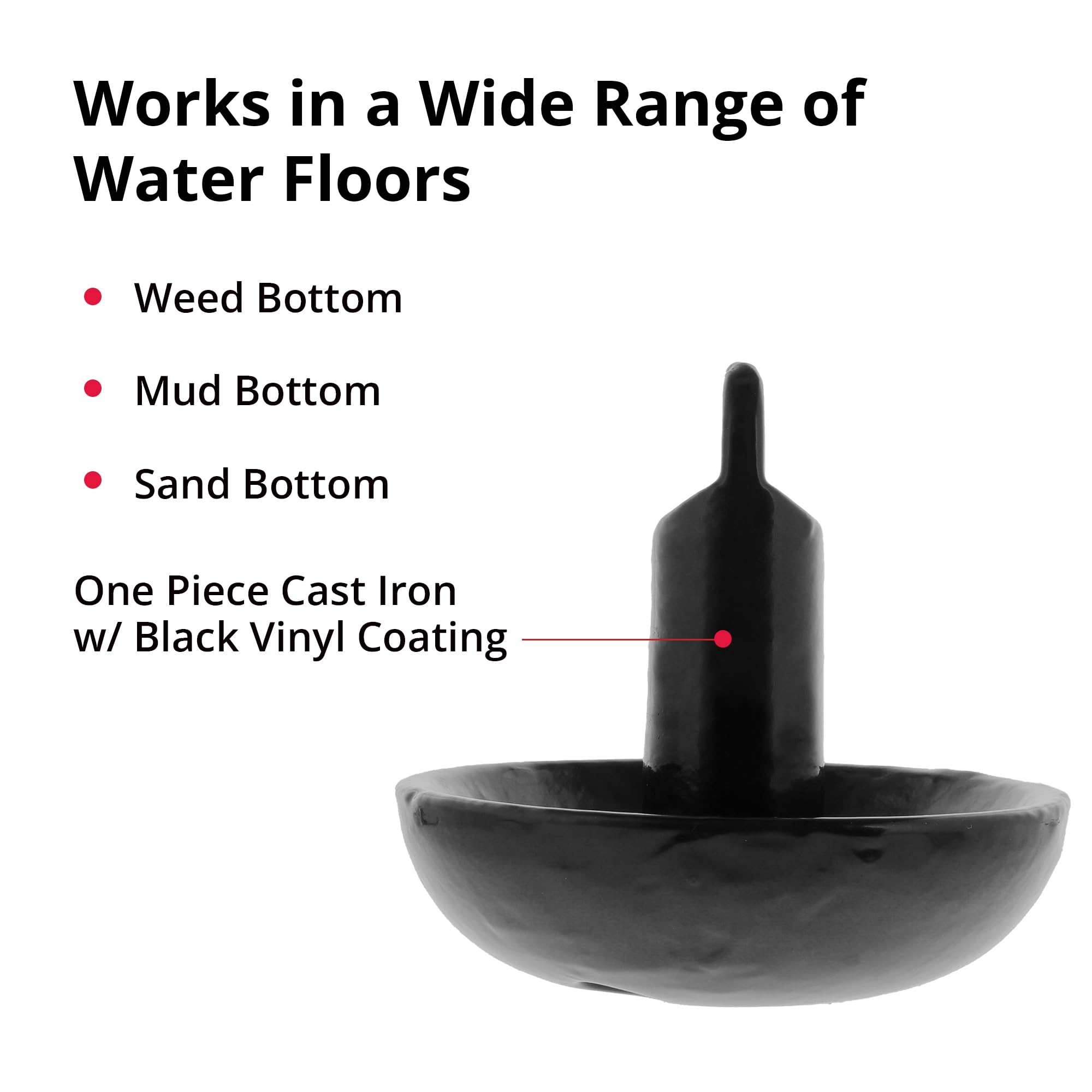 • Wide mushroom cap design provides superior holding power in soft bottoms